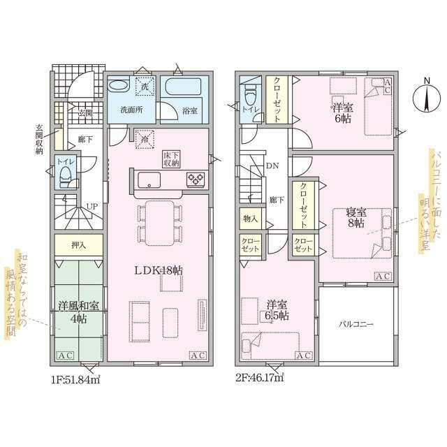 号棟番号:1号棟 2条区域 建物面積に別途ルーフバルコニー約7.29平米有 |